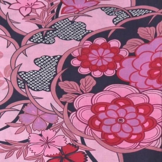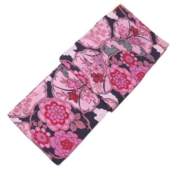 浴衣 レディース フリーサイズ 黒字 花と鹿の子 綿100%