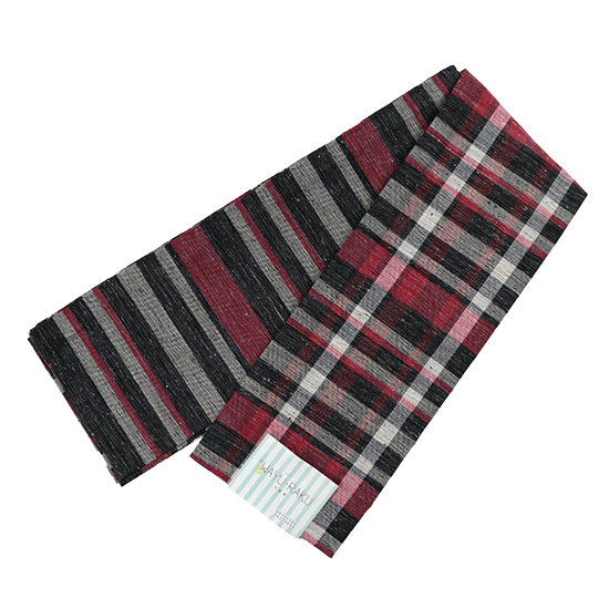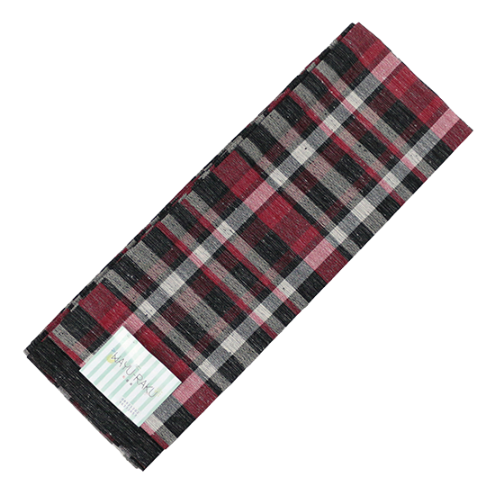 引き締まった黒に赤と白が際立つ、タータンチェックの半幅帯。